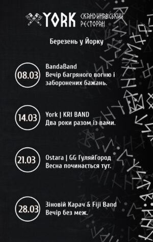 «Святкові вихідні конунгів» у скандинавському ресторані York з українським рок-гуртом…