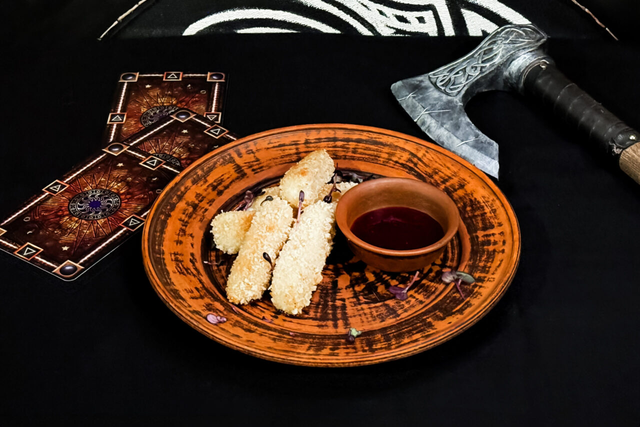 Яйце куряче, панірувальні сухарі, сир моцарела, соус журавлина, мікрогрін. (в цій страві є алергени)