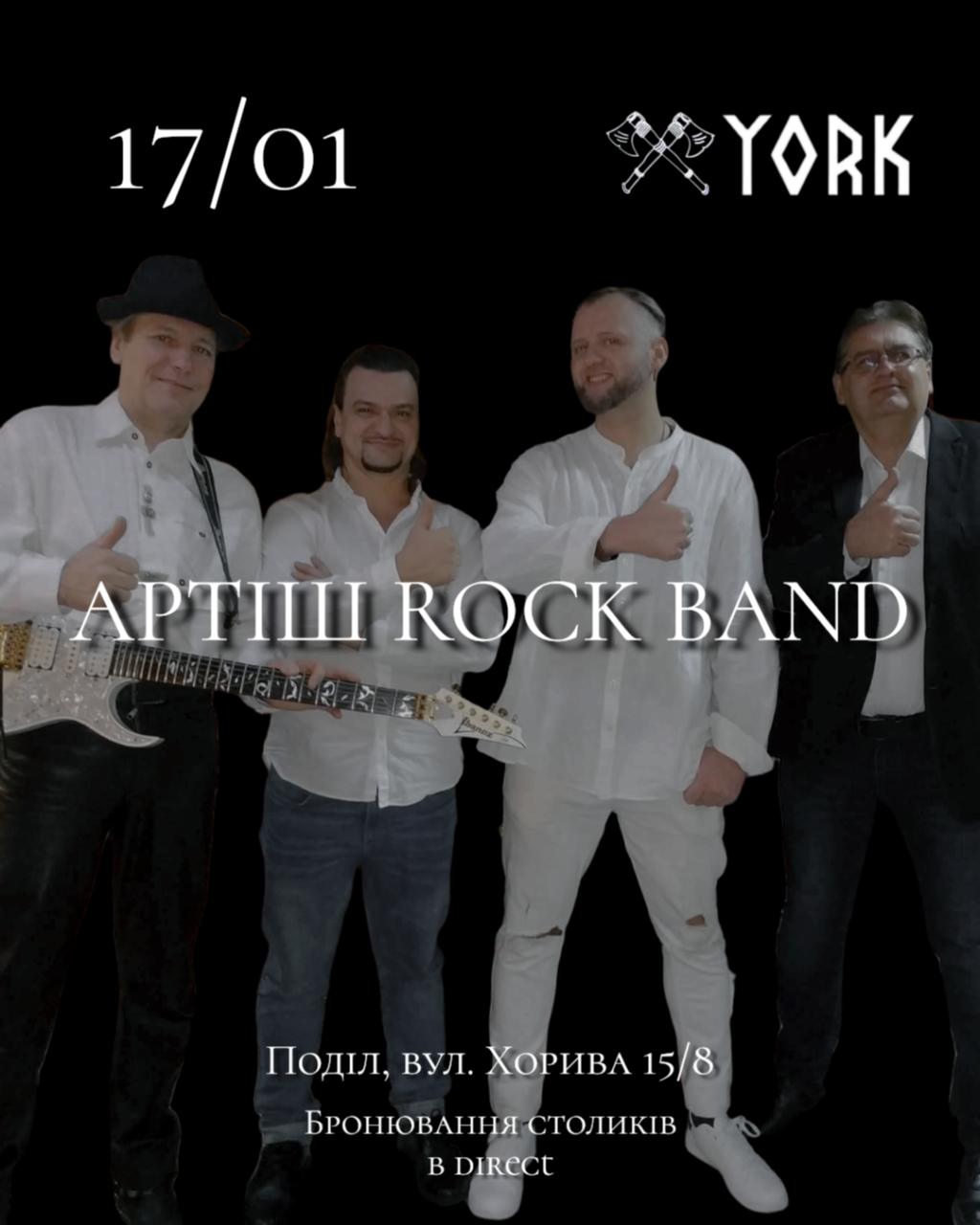 «Святкові вихідні конунгів» у скандинавському ресторані York з українським рок-гуртом «Артіш» @timofeyvedernik 17 січня (субота) о 18:00 у York звучатиме жива музика від рок-гурту «Артіш», а за одним столом зберуться ті, хто цінує характер, традиції та справжні емоції.