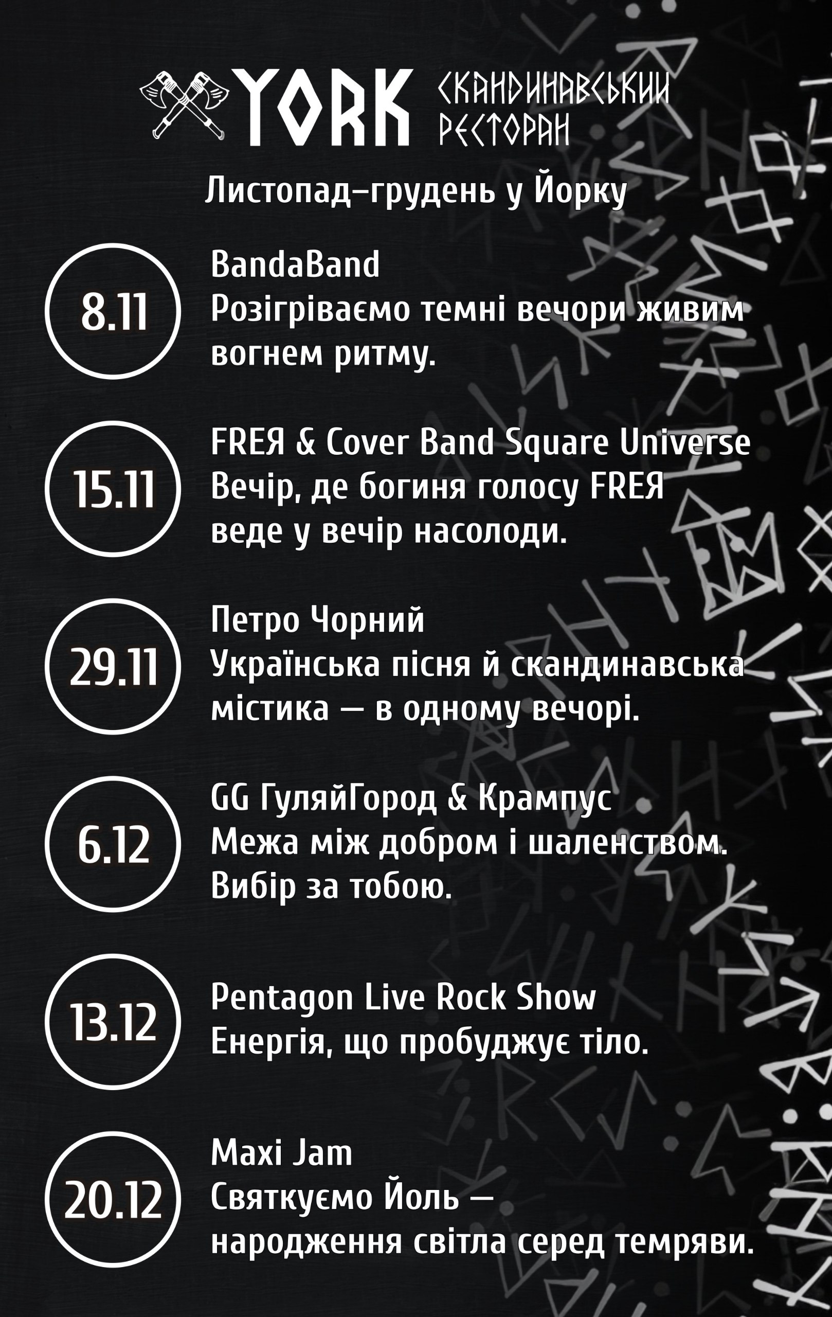 Слідкуйте за анонсами, бронюйте столи за посиланням в шапці @york.rest, і зустріньте кінець року в атмосфері, яка стане приємним спогадом.
